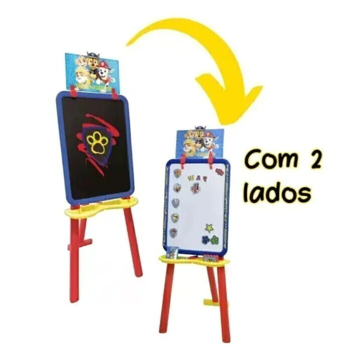Cavalete infantil - Cavalete de desenho - Lousa infantil - Quadro de escrever - Brinquedo educativo - Brinquedo Bang Toys - Cavalete dupla face - Quadro branco magnético - Brinquedo para criança - Kit de desenho - Presente infantil