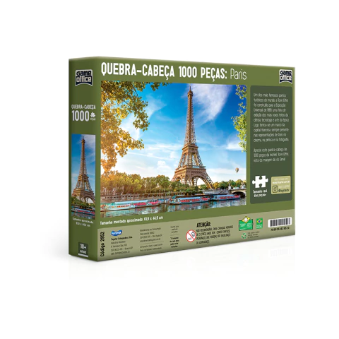 Viaje sem sair de casa com este incrível quebra-cabeça de 1000 peças da Toyster com o tema Paris. Ideal para adultos e jovens apaixonados por desafios e paisagens encantadoras, ele oferece uma experiência relaxante, criativa e estimulante, recriando um dos cenários mais icônicos do mundo.